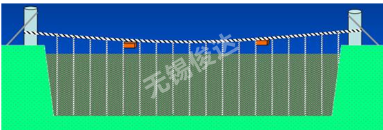適用于河寬小于60米,橫拉鋼絲繩的位置應高出水位0.5米以上, 電極陣懸掛在設計斷面上方 。