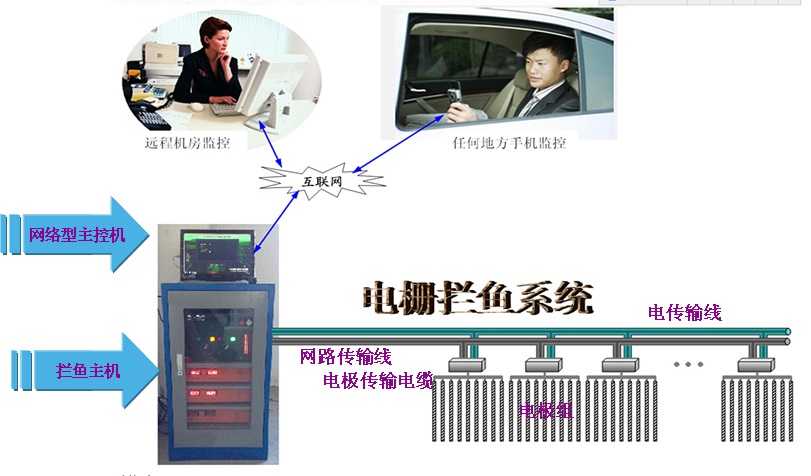 電攔魚是目前防止天然水域放養魚類逃逸的主要方法之一。它是根據水中電場對魚類具有刺激作用,而魚類對水中電場的刺激具有避電反應的現象,從而達到攔魚的效果。