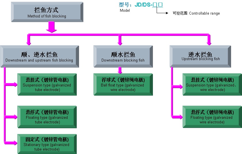 3、攔逆水魚,攔阻斷面有足夠強的電場區域,迫使魚類感電后返回,可選擇既節約原材料又易于施工的斷面進行。一般采用雙排式電極陣效果更佳。
